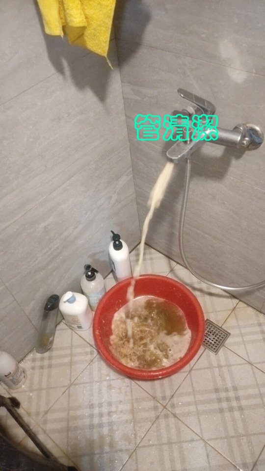 家中自來水熱水出水量變小且忽冷忽熱,經朋友介紹管清潔來電詢問瞭解主要是壁管卡垢水壓不足等….原因造成,高雄市小港區楊先生約定時間進行 水管清洗,以檸檬酸液浸泡配合高週波機器洗出銹渣及水垢,經過2個多小時將整戶 自來水管清洗 乾淨。